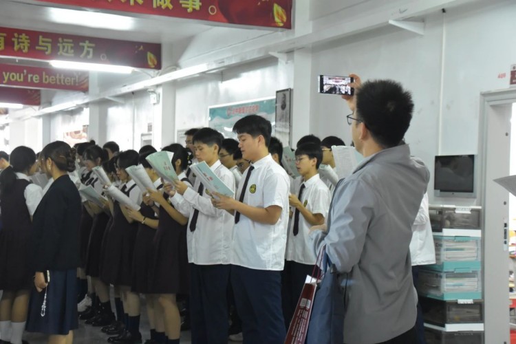 书声琅琅,气势如虹。与会的领导、老师首先观看了我校高三学生大课间朗读活动,对高三学子利用课间激情阅读展示出的良好精神面貌表示赞叹!