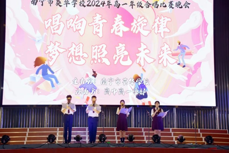 飞扬的歌声,吟唱难忘的岁月;熟悉的旋律,演绎时代的乐章!在这个充满希望与收获的季节里,南宁市英华学校高一年级举办了一场“唱响青春旋律,梦想照亮未来”合唱比赛晚会。这不仅是一场音乐的聚会,更是青春风采的展示,是同学们团结协作、共同追求艺术之美的生动实践。