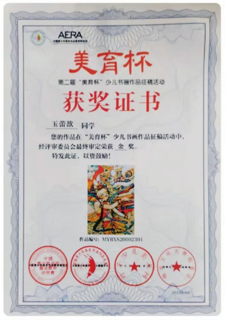 许定鑫、玉蕾歆同学荣获2024年第二届“美育杯”少儿书画作品大赛金奖