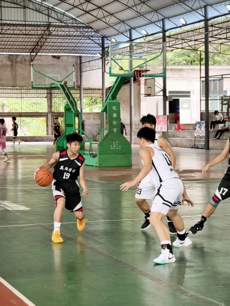 篮球场上,哨声响起,比赛拉开帷幕。面对强大的对手,英华少年们毫不畏惧。他们犹如一群勇猛的猎豹,迅速奔跑、跳跃、传球、投篮。他们的身影在阳光下闪耀,汗水在空气中挥洒。每一次进攻,都充满了力量与速度;每一次防守,都展现出顽强与坚韧。他们用精湛的球技、默契的配合,向观众们展示了篮球的魅力与激情。